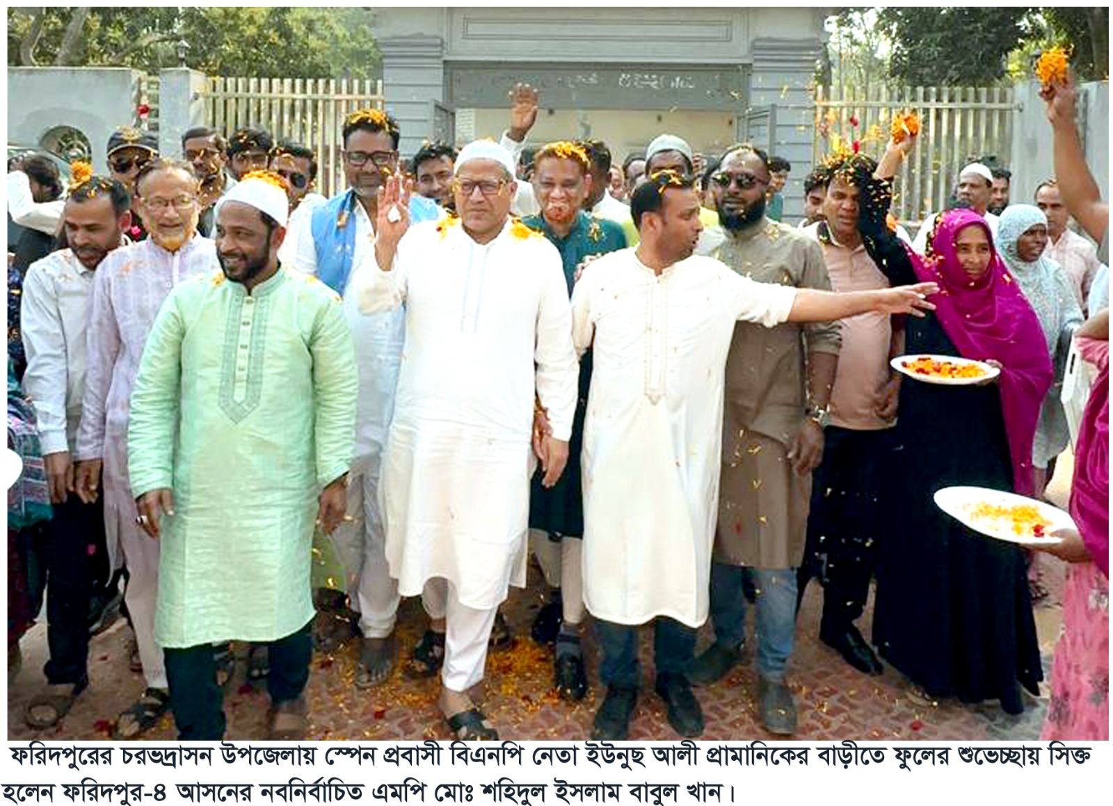 ফরিদপুরের চরভদ্রাসন উপজেলার স্পেন প্রবাসী বিএনপি নেতা ইউনুছ আলী প্রামানিকের বাড়ীতে ফুলের শুভেচ্ছায় সিক্ত হলেন ফরিদপুর-৪ আসনের নবনির্বাচিত এমপি মোঃ শহিদুল ইসলাম বাবুল খান। ত্রয়োদশ জাতীয় সংসদ নির্বাচনে বিএনপি প্রার্থী মোঃ শহিদুল ইসলাম বাবুল খান বিপুল ভোটে বিজয়ী হওয়ার পর উক্ত স্পেন প্রবাসী নেতার বাড়ীতে সৌজন্য স্বাক্ষাতে গেলে এক অনাড়ম্বন পরিবেশে নবাগত এমপিকে ফুলের শুভেচ্ছায় সিক্ত করা হয়।