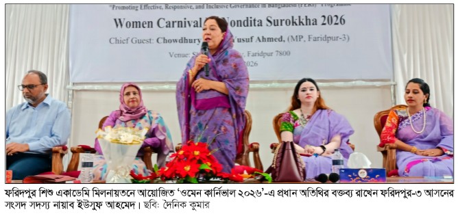 ফরিদপুরে বিপুল উৎসাহ-উদ্দীপনার মধ্য দিয়ে অনুষ্ঠিত হয়েছে নারী সক্ষমতা ও নেতৃত্ব বিকাশের অনন্য আয়োজন ‘ওমেন কার্নিভাল-২০২৬’। নারী দক্ষতা উন্নয়ন সংগঠন নন্দিতা সুরক্ষার উদ্যোগে শুক্রবার স্থানীয় শিশু একাডেমি মিলনায়তনে দিনব্যাপী এই বর্ণাঢ্য উৎসব সম্পন্ন হয়। দ্য এশিয়া ফাউন্ডেশন ও এফসিডিও-এর সহযোগিতায় আয়োজিত এই অনুষ্ঠানে জেলার বিভিন্ন প্রান্তের প্রায় ৩০০ নারী অংশগ্রহণ করেন, যা নারীর শক্তি, সাহস এবং সামাজিক পরিবর্তনের এক উজ্জ্বল প্রতিফলন হিসেবে ধরা দিয়েছে। জাতীয় সংগীত ও মনোমুগ্ধকর স্বাগত নৃত্যের মাধ্যমে অনুষ্ঠানের আনুষ্ঠানিকতা শুরু হয়। উদ্বোধনী বক্তব্যে নন্দিতা সুরক্ষার নির্বাহী পরিচালক তাহিয়াতুল জান্নাত রেমি প্রকল্পের লক্ষ্য ও উদ্দেশ্য তুলে ধরেন।
