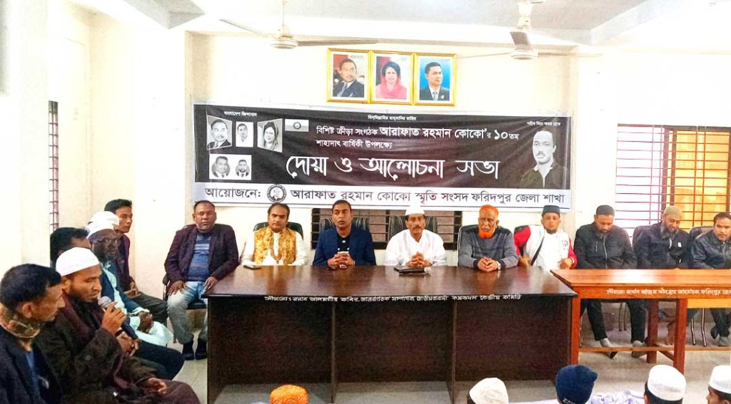 বিশিষ্ট ক্রীড়া সংগঠক আরাফাত রহমান কোকোর দশম শাহাদত বার্ষিকী উপলক্ষে আলোচনা সভা অনুষ্ঠিত ও দোয়া মাহফিল অনুষ্ঠিত হয়েছে।