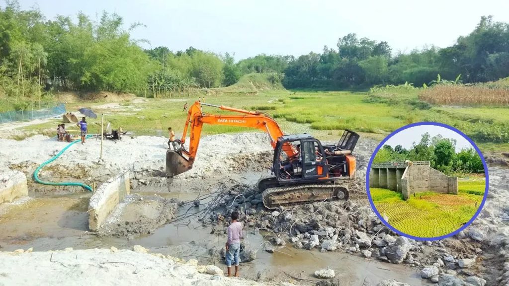 খানসামায় ভাঙা হলো মাঠে দাঁড়িয়ে থাকা সেই সেতুটি
