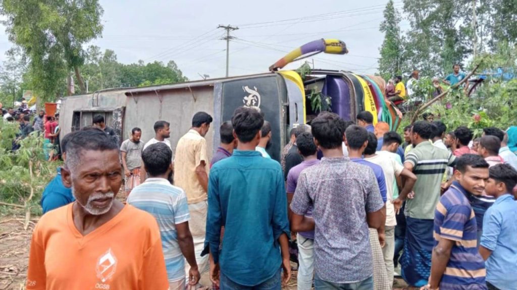 ঘোড়াঘাটে নিয়ন্ত্রণ হারিয়ে বাস খাদে, আহত ২০