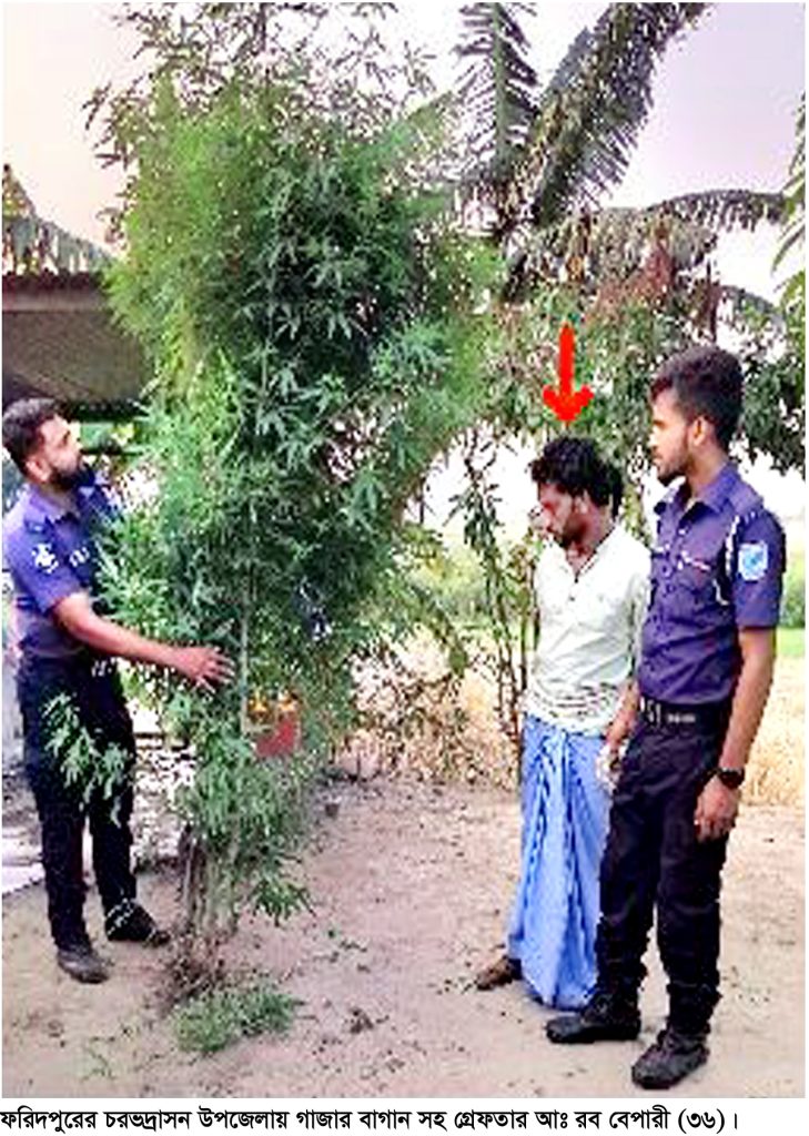 জানা যায়, গাঁজা মাদক উৎপাদনকারী ও ব্যাবসায়ী আঃ রব বেপারীর বাড়ী উপজেলা পদ্মা নদীর অপর পারের চর হোসেনপুর গ্রামে। এ দুর্গম চরাঞ্চলের বসতবাড়ীতে গাঁজার বাগান গড়ে সে দীর্ঘদিন ধরে এলাকায় মাদক সরবরাহ করে চলছিল। তার নামে আরো দু’টি ভিন্ন মামলার ওয়ারেন্টও রয়েছে বলে জানা যায়। পুলিশ অভিযান চালিয়ে তার বসতভিটের বাগান থেকে চারটি বড় বড় গাঁজার গাছ জব্দ করেছেন।