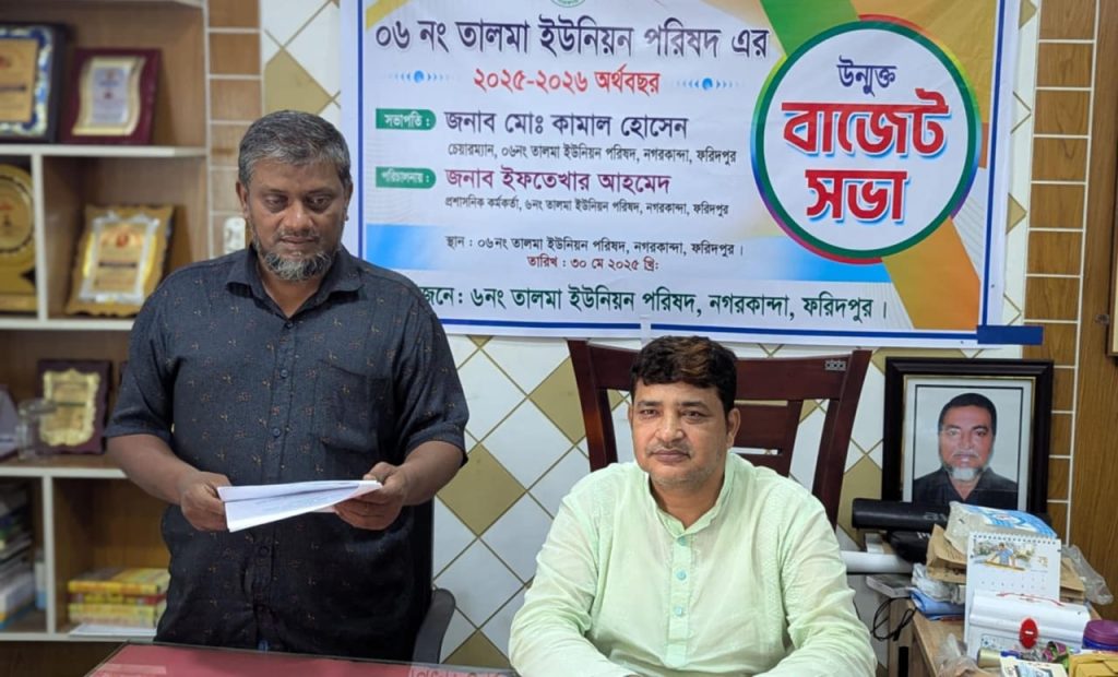 ফরিদপুরের নগরকান্দা উপজেলার তালমা ইউনিয়ন পরিষদের ২০২৫-২৬ অর্থ বছরের উন্মুক্ত বাজেট ঘোষণা করা হয়েছে।