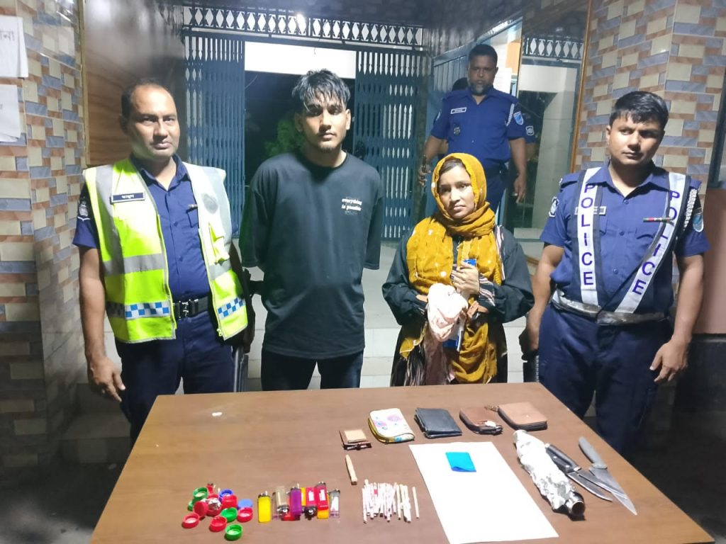 ফরিদপুরে যৌথ বাহিনীর অভিযানের খালেদ মোহাম্মদ ওরফে তূর্য (২৭) ও তার স্ত্রী আইরিন বেগম (২৬) কে শহরের ঝিলটুলীস্থ একটি ভাড়া বাড়ি থেকে গ্রেফতার করা হয়। এ সময় ওই বাড়িটি তল্লাশি করে ৬০ টি ইয়াবা বড়ি ও মাদক সেবনের বিভিন্ন আনুষাঙ্গিক দ্রব্য ও উপকরণ জব্দ করা হয়।