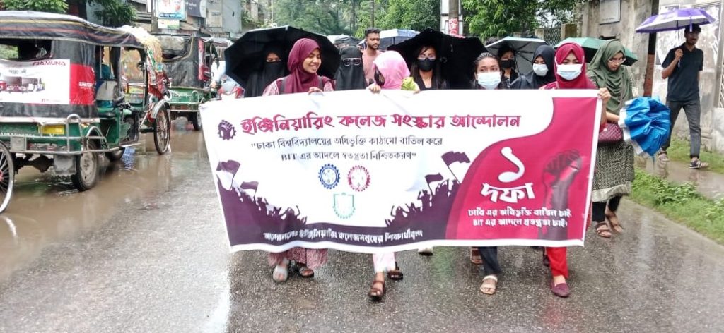 এক দফা দাবি আদায়ের লক্ষ্যে ‌ ইঞ্জিনিয়ারিং কলেজের শিক্ষার্থীদের মানববন্ধন ও স্মারকলিপি প্রদান অনুষ্ঠিত হয়েছে।