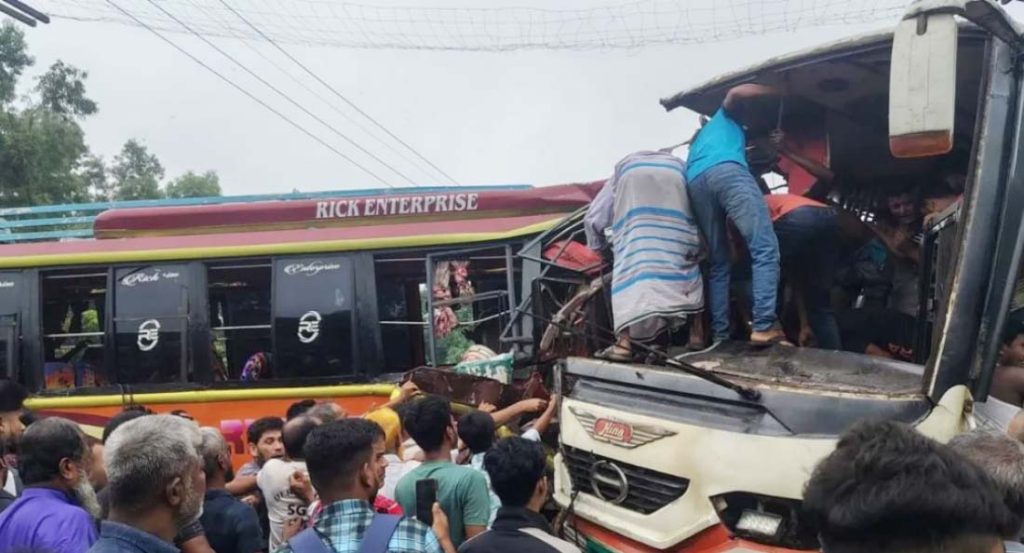 পুলিশ ও স্থানীয় সূত্রে জানা গেছে, বৃহস্পতিবার সকালে চুয়াডাঙ্গা থেকে রয়েল পরিবহনের একটি বাস ফরিদপুর-খুলনা মহাসড়কের কানাইপুর এলাকায় পৌঁছালে বিপরীত দিক থেকে আসা একটি লোকাল পরিবহনের বাসের মুখোমুখি সংঘর্ষ। পরে খবর পেয়ে পুলিশ হাইওয়ে পুলিশ ও ফায়ার সার্ভিসের কর্মীরা উদ্ধার কাজে অংশ নেয়। আহতদের দ্রুত ফরিদপুর মেডিকেল কলেজ হাসপাতালে পাঠানো হয়েছে।