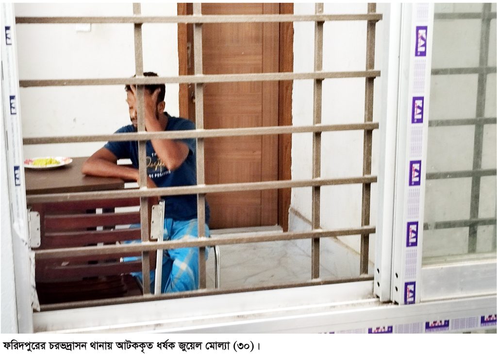 ফরিদপুরের চরভদ্রাসন উপজেলার চরহরিরামপুর ইউনিয়নের পশ্চিম শালেপুর গ্রামের তিন সন্তানের জননী এক গৃহবধু (২৯)কে গভীর রাতে ঘরের দরজার শিকল ভেঙে ঢুকে প্রতিবেশী এক লম্পট ধর্ষন করেছে বলে অভিযোগ পাওয়া গেছে। উক্ত ধর্ষক একই গ্রামের আব্দুল হাই খান নামক হাটের পাশে আব্দুর রাজ্জাক মোল্যার ছেলে জুয়েল মোল্যা (৩০)।
