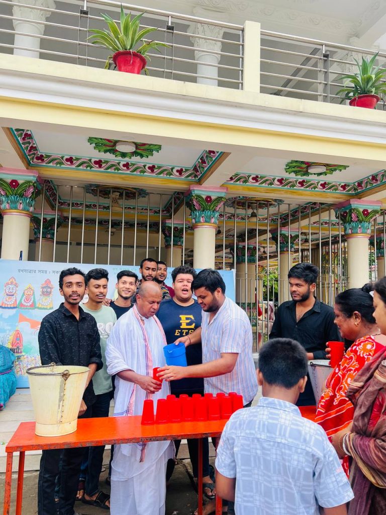 শ্রী শ্রী জগন্নাথ দেবের উল্টো রথযাত্রা উপলক্ষে ভক্তদের মধ্যে শরবত বিতরণ করেছেন বাংলাদেশ হিন্দু ছাত্র পরিষদ ফরিদপুর শহর শাখা। আজ সকালে শ্রীধাম শ্রী অঙ্গনে ভক্তবৃন্দের মধ্যে শরবত বিতরণ করা হয়। উক্ত শরবত বিতরণ কর্মসূচি শুভ দাস এর সভাপতিত্বে এবং বর্ষন কর্মকার এর সঞ্চালনায় এ কর্মসূচির শুভ উদ্ভোদন করেন শ্রীধাম শ্রীঅঙনের সম্মানিত সাধারণ সম্পাদক ডক্টর শ্রীমৎ নিকুঞ্জ বন্ধু ব্রহ্মচারী । এ সময় উপস্থিত ছিলেন শ্রীমৎ বন্ধু কিশোর ব্রহ্মচারী শ্রীমৎ ভক্তিধন ব্রহ্মচারী । আরো উপস্থিত ছিলেন বাংলাদেশ হিন্দু ছাত্র পরিষদ ফরিদপুর জেলা শাখার সভাপতি হৃদয় শীল, সাধারণ সম্পাদক সুদীপ্ত সাহা, সিঃ সহ সভাপতি উদয় সরকার ,সহ সভাপতি আকাশ বিশ্বাস দয়াল, যুগ্ম সাধারণ সম্পাদক শুভঙ্কর বণিক, সাংগঠনিক সম্পাদক বিপ্লব বিশ্বাস, সি: সহ সাংগঠনিক সম্পাদক শৌভিক সাহা,সদর উপজেলা শাখার সাধারণ সম্পাদক অন্তু আচার্য। কেন্দ্রীয় কমিটির সম্মানিত যুগ্ন আহ্বায়ক অমিত বিশ্বাস। শহর শাখার সাংগঠনিক সম্পাদক সূর্য দত্ত, সহ সাংগঠনিক সম্পাদক মানব সিকদার, প্রচার সম্পাদক প্রলয় রায়। হিন্দু ছাত্র পরিষদ এর শুভাকাঙ্ক্ষী পাপ্পু সরকার।