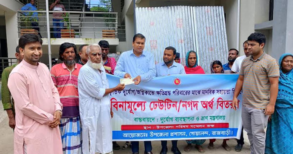 রাজবাড়ীর গোয়ালন্দে প্রাকৃতিক দুর্যোগে ক্ষতিগ্রস্ত অসহায় ৭৬টি পরিবারের মাঝে ১২০ বান্ডিল ঢেউটিন ও ৩ লাখ ৬০ হাজার টাকার চেক বিতরণ করা হয়েছে।