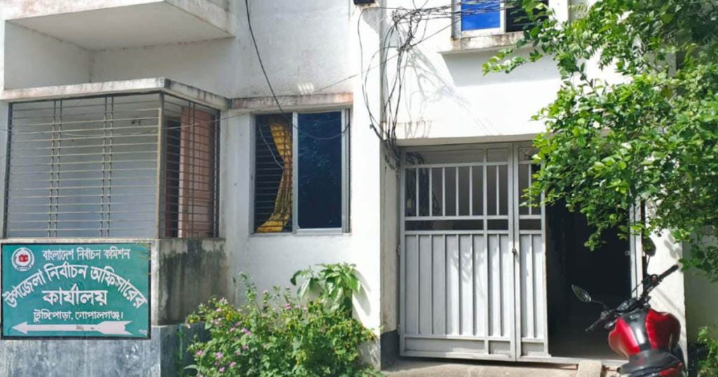 গোপালগঞ্জের টুঙ্গিপাড়ায় উপজেলা নির্বাচন অফিস (ইসি) দীর্ঘদিন ধরে ভাড়াটিয়া ভবনে কার্যক্রম পরিচালনা করছে। উপজেলা পরিষদ ভবন থেকে প্রায় ৬০০ মিটার দূরে, সরকারি বাসভবনের পিছনে স্থানীয় এক ব্যক্তির মালিকানাধীন ভবনের নিচতলায় চলছে এই অফিসের কার্যক্রম। অপ্রতুল জায়গা ও জটিল যাতায়াত ব্যবস্থার কারণে নাগরিক সেবা কার্যক্রম ব্যাহত হচ্ছে।