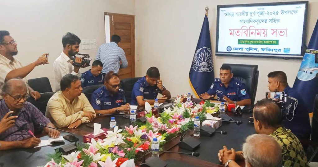 আসন্ন শারদীয় দুর্গাপূজা উপলক্ষে ফরিদপুর জেলায় নিরাপত্তা ব্যবস্থা জোরদার করা হয়েছে। পূজা মণ্ডপে শান্তিপূর্ণ পরিবেশ নিশ্চিত করতে এক সপ্তাহ জেলার সব মদের দোকান বন্ধ রাখা হবে এবং কোনো ডিজে পার্টি করা যাবে না বলে জানিয়েছেন ফরিদপুরের পুলিশ সুপার (এসপি) মো. আব্দুল জলিল।