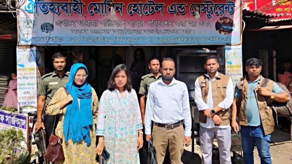 উপজেলা নির্বাহী অফিসার (ইউএনও) জাকিয়া সুলতানা বলেন, ‘অভিযান পরিচালনাকালে নিরাপদ খাদ্য আইনে মেয়াদোত্তীর্ণ পণ্য পাওয়া, পচা-বাসি খাবার ফ্রিজে সংরক্ষণ করা, অসাস্থ্যকর ও নোংরা পরিবেশে খাবার দ্রব্য তৈরির অপরাধে মমিন হোটেল অ্যান্ড রেস্টুরেন্ট মালিককে ২ লক্ষ টাকা জরিমানা আরোপ ও আদায় করা হয়।’