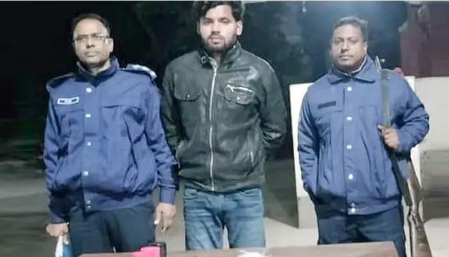 সোমবার দিবাগত রাতে উপজেলার পৌরসদরের মমিন মার্কেট এলাকা সংলগ্ন নিজ বাড়ি থেকে তাকে আটক করা হয়। আটক শামীম বিন ইসমাইল ওই গ্রামের ইসমাইল হোসেনের ছেলে।