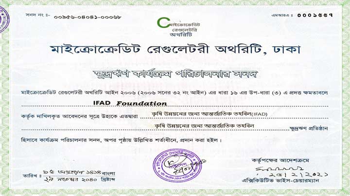 তিনি ‘ইফাদ লিংক লোন’ প্রোগ্রামের অধীনে ঋণের জন্য আবেদন করলে তাকে আবেদন সনদ, লোন প্রদানের সিদ্ধান্ত সনদ ও লোন অনুমোদন সনদসহ বিভিন্ন নথিপত্র প্রদান করা হয়। এসব প্রক্রিয়ার অংশ হিসেবে ‘ফেরতযোগ্য ফি’ ও ‘ফান্ড ট্রান্সফার ফি’ বাবদ বিভিন্ন ধাপে ২ লাখ ২ হাজার ৫৩৯ টাকা বিভিন্ন ব্যাংক অ্যাকাউন্টে জমা দেন তিনি।