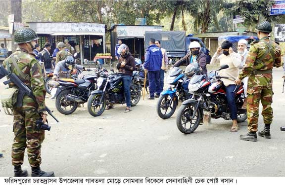 ত্রয়োদশ জাতীয় সংসদ নির্বাচনকে সামনে রেখে ফরিদপুরের চরভদ্রাসন উপজেলার সাধারন মানুষের মধ্যে ভোটের শঙ্কা কাটাতে গত দু’দিন ধরে বিভিন্ন রাস্তার মোড়ে বসানো হচ্ছে সেনা বাহিনীর চেক পোষ্ট। সাথে রয়েছেন থানা পুলিশ। এসব চেক পোষ্টে রাস্তায় চলমান মটরযান, সন্দেহভাজন দুর্বৃত্ত বখাটে ও অবৈধ মালামাল বহনকারী যানগুলো তল্লাশি চালানো হচ্ছে। এতে উপজেলায় অবৈধ অস্ত্রমুক্ত ও সন্ত্রাসীদের আনাগোনা রোধ হচ্ছে বলে সাধারনরা স্বস্তি প্রকাশ করছেন।