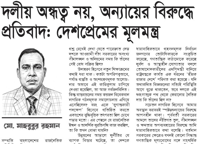 দলীয় অন্ধত্ব নয়, অন্যায়ের বিরুদ্ধে প্রতিবাদ: দেশপ্রেমের মূলমন্ত্র