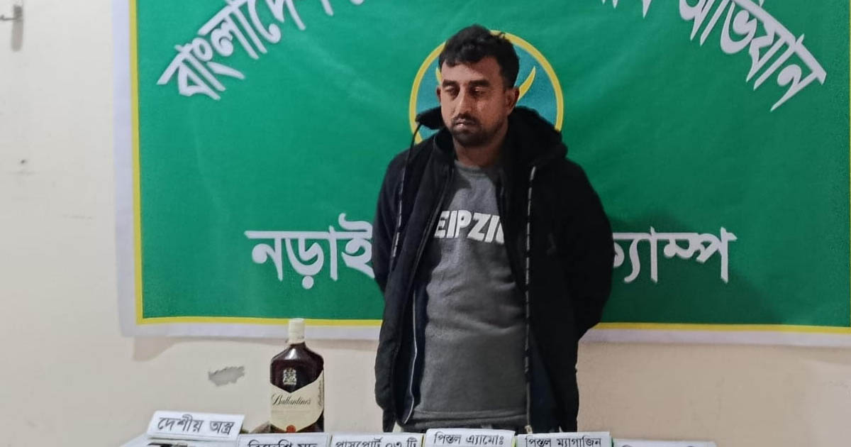 নড়াইলে যৌথবাহিনীর অভিযানে পিস্তল সহ যুবক গ্রেপ্তার