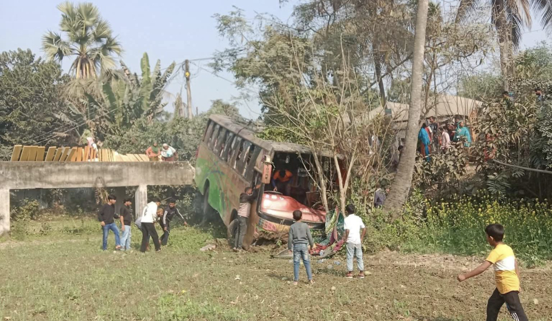 ফরিদপুরের মাইজকান্দি–ভাটিয়াপাড়া আঞ্চলিক মহাসড়কে নিয়ন্ত্রণ হারিয়ে এমডি বিল্লাল নামে একটি লোকাল যাত্রীবাহী বাস খাদে পড়ে যায়। এতে অন্তত ৭ জন যাত্রী আহত হয়েছেন।