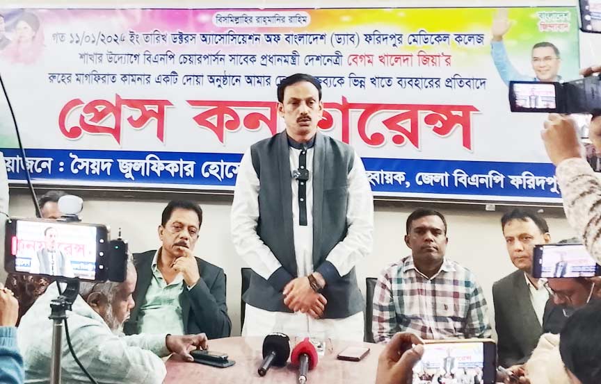 সংবাদ সম্মেলনে সৈয়দ জুলফিকার হোসেন জুয়েল জানান, গত ১১ জানুয়ারি ২০২৬ তারিখে ফরিদপুর মেডিকেল কলেজে বিএনপি চেয়ারপারসন ও সাবেক প্রধানমন্ত্রী বেগম খালেদা জিয়ার রোগমুক্তি ও রুহের মাগফিরাত কামনায় ড্যাব-এর উদ্যোগে এক দোয়া মাহফিল অনুষ্ঠিত হয়। উক্ত অনুষ্ঠানে তিনি যে বক্তব্য দিয়েছিলেন, তার পূর্ণাঙ্গ অংশ প্রচার না করে কেবল নির্দিষ্ট কিছু খণ্ডিত অংশ প্রকাশ করা হয়েছে।