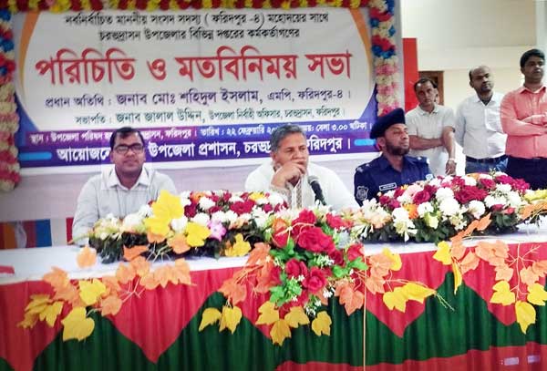ফরিদপুরের চরভদ্রাসন উপজেলায় প্রশাসনিক কর্মকর্তাগণ, ইউপি চেয়ারম্যানবৃন্দ, রাজনৈতিক নেতৃবৃন্দ ও স্থানীয় সাংবাদিকবৃন্দের সাথে ফরিদপুর-৪ আসনের নবনির্বাচিত জাতীয় সংসদ সদস্য মোঃ শহিদুল ইসলাম বাবুলের এক মতবিনিময় সভা অনুষ্ঠিত হয়েছে। রোববার বিকেলে উপজেলা পরিষদ হলরুমে এ মতবিনিময় সভার আয়োজন করেন প্রশাসন।