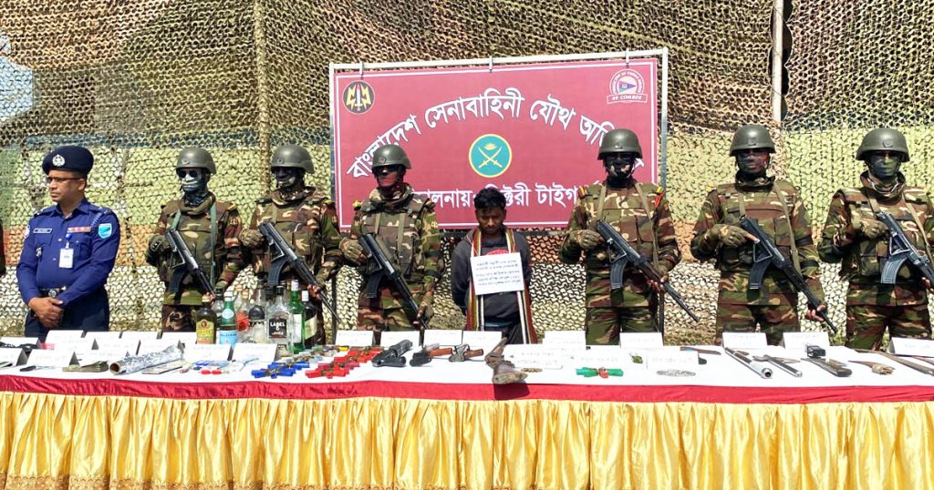 শরীয়তপুরে সেনাবাহিনীর অভিযানে আগ্নেয়াস্ত্র ও গোলাবারুদ উদ্ধার, নারীসহ গ্রেপ্তার ২