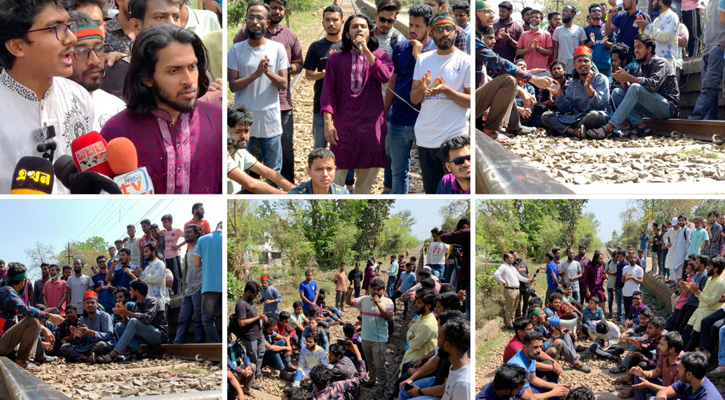 ডিসেন্ট্রালাইজড বাংলাদেশ গড়ার লক্ষ্যে ও ঢাবি কেন্দ্রীকতার প্রতিবাদে রাজশাহী বিশ্ববিদ্যালয় এলাকায় রেললাইন অবরোধ করেছেন রাজশাহী বিশ্ববিদ্যালয়ের শিক্ষার্থীরা। এতে রাজশাহীর সঙ্গে সারা দেশের রেল যোগাযোগ বন্ধ রয়েছে। বুধবার (৫ মার্চ) বেলা…