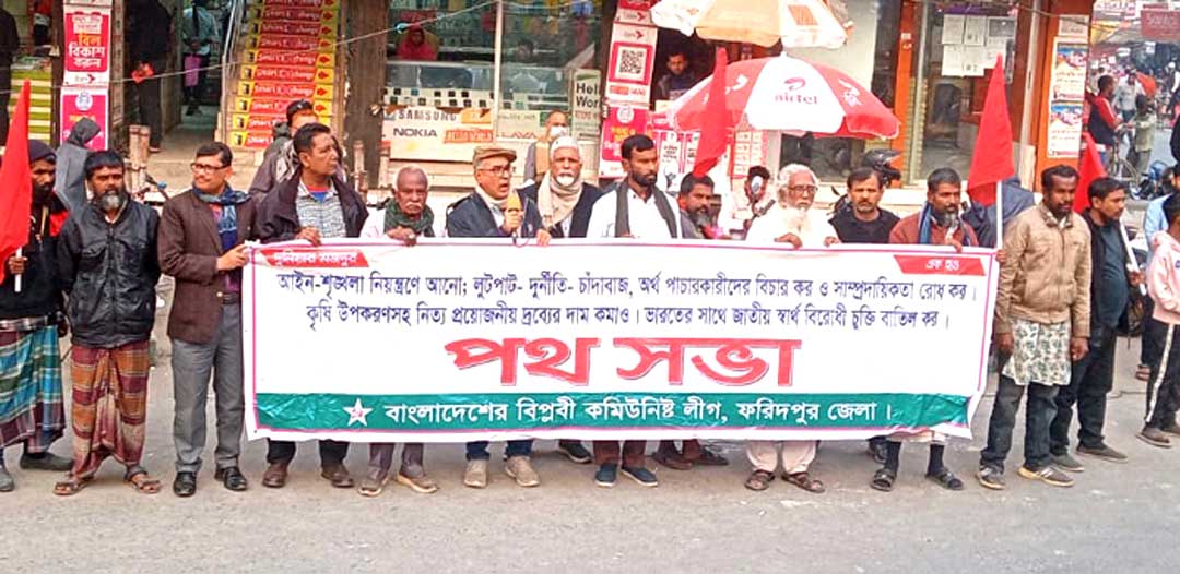 নিজস্ব প্রতিবেদক ফরিদপুরে বিপ্লবী কমিউনিস্ট লীগের উদ্যোগে পথসভা অনুষ্ঠিত হয়েছে। শনিবার বিকেল চারটায়  শহরের জনতা ব্যাংকের মোড়ে  আইনশৃঙ্খলা নিয়ন্ত্রণ , লুটপাট দুর্নীতি, চাঁদাবাজ  অর্থ পাচারকারীদের বিচার ,…