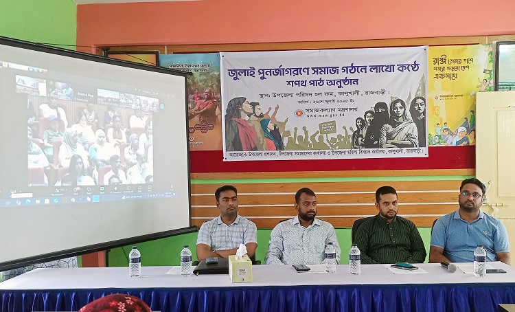 নিজস্ব প্রতিবেদক:- ফরিদপুরের সদরপুর উপজেলা প্রশাসন ও সমাজসেবা কার্যালয়ের আয়োজনে জুলাই পুনর্জাগরণে সমাজ গঠনে শপথ গ্রহণ অনুষ্ঠান অনুষ্ঠিত হয়েছে। আজ শনিবার (২৬ জুলাই) সকাল সাড়ে ৯টায় উপজেলা পরিষদ সম্মেলন…