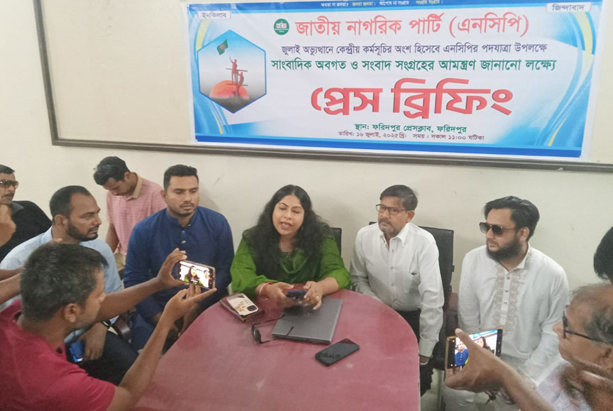 নিজস্ব প্রতিবেদক জুলাই অভ্যুত্থান উপলক্ষে কেন্দ্রীয় কর্মসূচির অংশ হিসেবে জাতীয় নাগরিক পার্টি (এনসিপি) ফরিদপুরে এক প্রেস ব্রিফিং আয়োজন করেছে। গতকাল বুধবার সকাল ১১টা ৩০ মিনিটে ফরিদপুর প্রেস ক্লাব মিলনায়তনে এ…