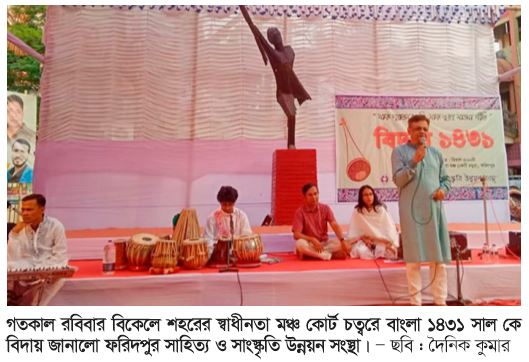 নিজস্ব প্রতিবেদক, ফরিদপুর যাক পুরাতন স্মৃতি যা ভুলে যাওয়া গীতি এই স্লোগানের মধ্য দিয়ে বাংলা ১৪৩১ সাল কে বিদায় জানালো ফরিদপুর সাহিত্য ও সাংস্কৃতি উন্নয়ন সংস্থা। রবিবার বিকেলে শহরের স্বাধীনতা…
