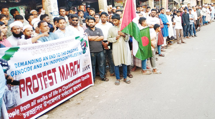 মোঃ মেজবাহ উদ্দিন, চরভদ্রাসন থেকে ইসরাইল কর্তৃক ফিলিপাইনের গাজায় বর্বর হামলার প্রতিবাদে ফরিদপুরের চরভদ্রাসন উপজেলা সদর বাজার চত্তরে সোমবার বিকেল ৫টায় এক মানববন্ধন কর্মসূচী অনুষ্ঠিত হয়েছে। উপজেলা উলামা পরিষদের উদ্যোগে আয়োজিত এ…