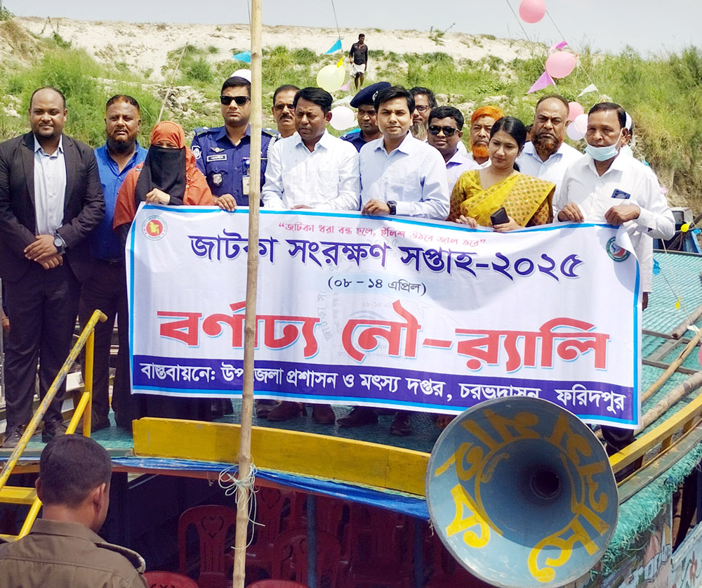 মোঃ মেজবাহ উদ্দিন, চরভদ্রাসন থেকে ফরিদপুরের চরভদ্রাসন উপজেলায় মঙ্গলবার জাটকা সংরক্ষন সপ্তাহ-২০২৫খ্রি. এর উদ্বোধনী অনুষ্ঠান সম্পন্ন হয়েছে। এ উপলক্ষে সাড়ে ১০ টায় উপজেলা পদ্মা নদীর গোপালপুর ঘাট থেকে বর্ণাঢ্য এক নৌ-র্যালি…