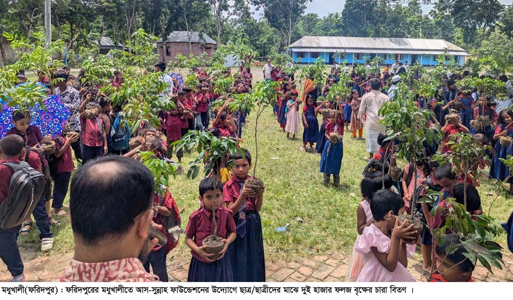 মধুখালীতে শিক্ষার্থীর মাঝে দুই হাজার ফলজ চারা বিতরণ