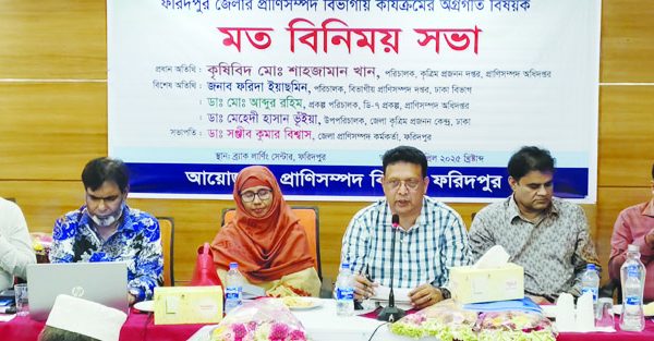 ফরিদপুর জেলা প্রাণিসম্পদ দপ্তরের আয়োজনে অনুষ্ঠিত মতবিনিময় সভায় ডি-৭ প্রকল্প এর প্রকল্প পরিচালক ডাঃ মোঃ আব্দুর রহিম, জেলা কৃত্রিম প্রজনন কেন্দ্র, ঢাকা এর উপ-পরিচালক ডাঃ মেহেদী হাসান ভূঁইয়া ও প্রাণিসম্পদ বিভাগে কর্মরত কর্মকর্তা এবং মাঠ পর্যায়ের কর্মকর্তারা উপস্থিত ছিলেন।