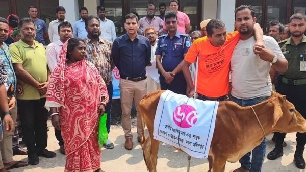 বোয়ালমারী প্রতিনিধিঃফরিদপুরের বোয়ালমারীতে দরিদ্র জেলে বা মৎস্যজীবীদের মাঝে গবাদিপশু বিতরণ করা হয়েছে। বুধবার দুপুরে উপজেলার স্বীকৃত ৭৫ মৎস্যজীবীর হাতে একটি করে বকনা বাছুর তুলে দেন উপজেলা নির্বাহী অফিসার তানভীর হাসান চৌধুরী। অসহায় জেলেদের জন্য বিকল্প কর্মসংস্থান নিশ্চিতে বাংলাদেশ মৎস্য অধিদপ্তর কর্তৃক গৃহীত দেশীয় প্রজাতির মাছ ও শামুক সংরক্ষণ- উন্নয়ন প্রকল্পের আওতায় মৎস্যজীবীদের মাঝে এই গবাদিপশু বিতরণ করা হয়।