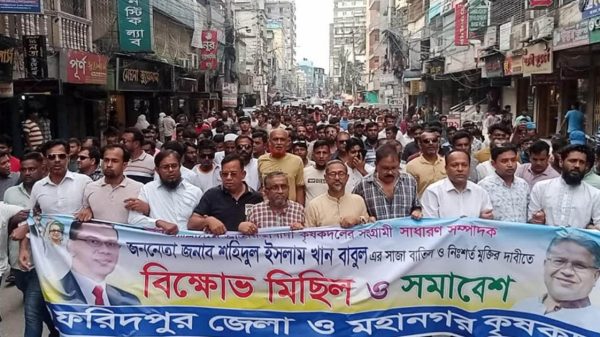 কৃষকদলের কেন্দ্রীয় কমিটির সাধারণ সম্পাদক শহিদুল ইসলাম খান বাবুলের সাজা বাতিল ও নি:শর্ত মুক্তির দাবিতে ফরিদপুর জেলা ও মহানগর কৃষকদলের উদ্যোগে বিক্ষোভ মিছিল ও সমাবেশ অনুষ্ঠিত হয়েছে।