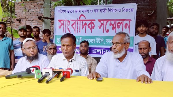 ফরিদপুরের সদরপুর উপজেলার ভাষানচর ইউনিয়নের মধুমন্ডলের ডাঙ্গী গ্রামে আজ সোমবার বিকেল ৫টার দিকে অবৈধ ভাবে জমি দখল ও ঘরবাড়ি নির্মানের বিরুদ্ধে ওই গ্রামের বাসিন্দা ও সাবেক মেম্বার পলাশ চন্দ্র মন্ডল সংবাদ সম্মেলন করেছেন। এ সময় এলাকার শতাধিক নারী পুরুষ ও স্থানীয় গন্যমান্য ব্যক্তিরা উপস্থিত ছিলেন।