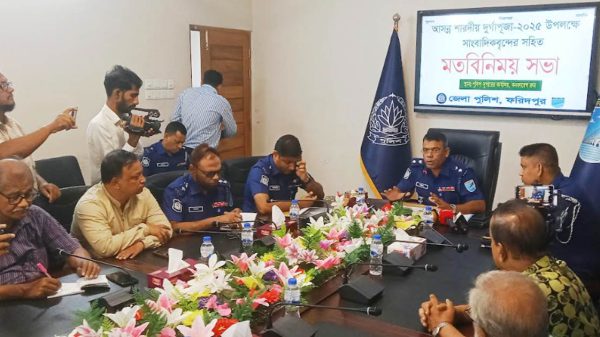 আসন্ন শারদীয় দুর্গাপূজা উপলক্ষে ফরিদপুর জেলায় নিরাপত্তা ব্যবস্থা জোরদার করা হয়েছে। পূজা মণ্ডপে শান্তিপূর্ণ পরিবেশ নিশ্চিত করতে এক সপ্তাহ জেলার সব মদের দোকান বন্ধ রাখা হবে এবং কোনো ডিজে পার্টি করা যাবে না বলে জানিয়েছেন ফরিদপুরের পুলিশ সুপার (এসপি) মো. আব্দুল জলিল।