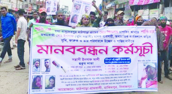 হিলিতে সুখি ও তার স্বামী সহ সন্ত্রাসীদের গ্রেফতারের দাবীতে বিক্ষোভ