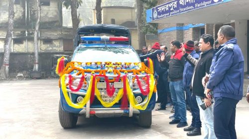 সুসজ্জিত গাড়িতে কনস্টেবলের রাজকীয় বিদায়