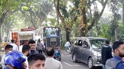 শরীয়তপুরে নিষিদ্ধ আওয়ামী লীগের ছোড়া হাতবোমে পুলিশের গাড়ি ক্ষতিগ্রস্ত
