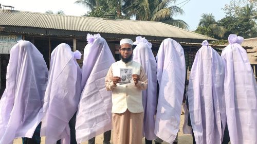 ফরিদপুর-৪ আসনে কাফনের কাপড় পরে নির্বাচনী প্রচারণায় জাতীয় পার্টির প্রার্থী-সমর্থকরা