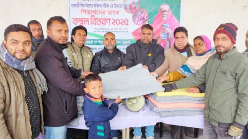 রাজবাড়ীতে শিশু-কিশোর অধিকার পরিষদের উদ্যোগে শীতার্তদের মাঝে কম্বল বিতরণ